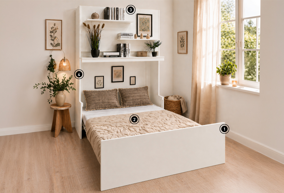 Comment ce meuble passe-t-il d’un lit à un bureau ? Comment peut-il combiner deux fonctions si différentes ? Comment peut-il être vraiment insoupçonnable ? Autant de questions qu’il est normal de vous poser quand il s’agit d’un mobilier escamotable et motorisé.